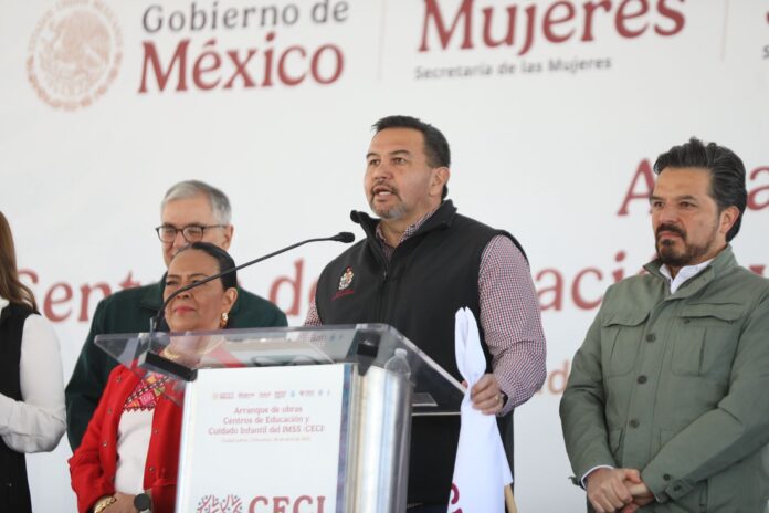 “Pasamos de las guarderías del IMSS a este nuevo modelo de Centro de Educación y Cuidado Infantil, como usted nos los ha pedido (Presidenta) y aquí, en este lugar, vamos a poner la primera piedra, son cinco CECI que arrancan”, comentó durante el enlace con Sheinbaum Pardo.