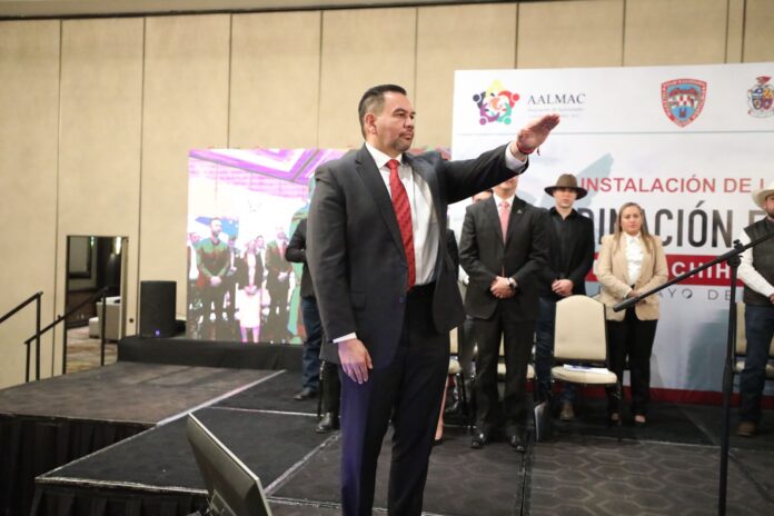 “Es un honor asumir esta responsabilidad, en el ánimo de que sea un esfuerzo de unidad y de trabajo no partidista por Chihuahua”, dijo el Presidente Municipal de Juárez, Cruz Pérez Cuéllar, al tomar protesta como coordinador estatal de la Asociación de Autoridades Locales de México A. C. (AALMAC).