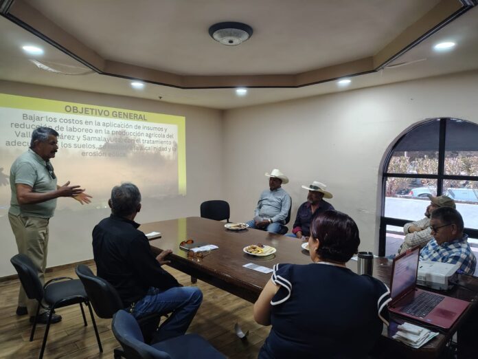 En una reunión celebrada con productores agrícolas, la Presidenta Municipal de Praxedis G. Guerrero, Rosario Moreno López, recibió al personal técnico de la Dirección de Desarrollo Rural del Municipio de Juárez, quienes presentaron los beneficios de las soluciones nutritivas aplicadas a los cultivos.