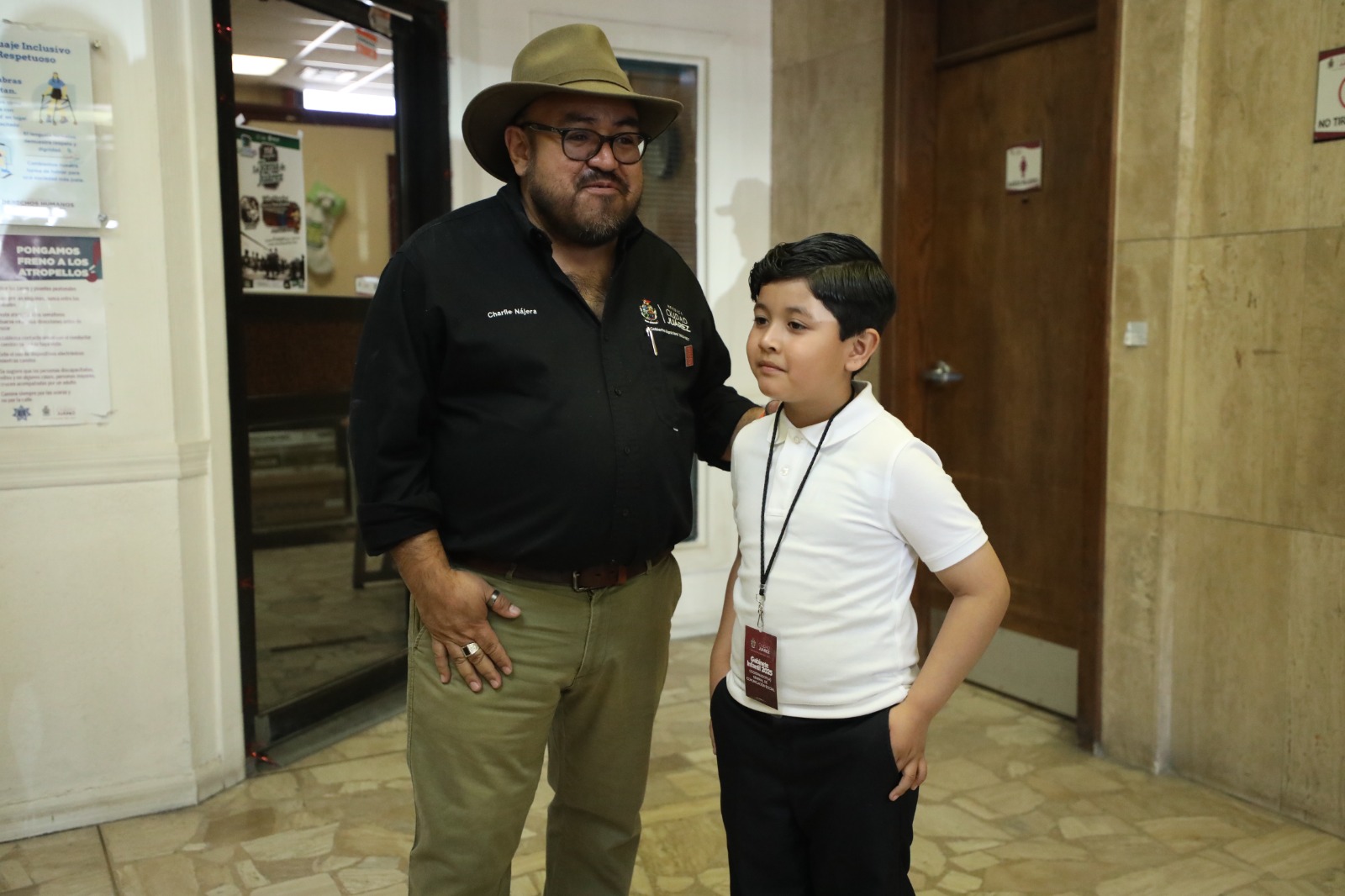 Elizabeth Almaraz, mamá de Leonardo, platicó que el niño despertó esta mañana nervioso pero con mucha emoción porque sería funcionario municipal por un día.