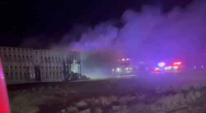 HomePORTADASe incendia remolque ganadero en la carretera a Juárez