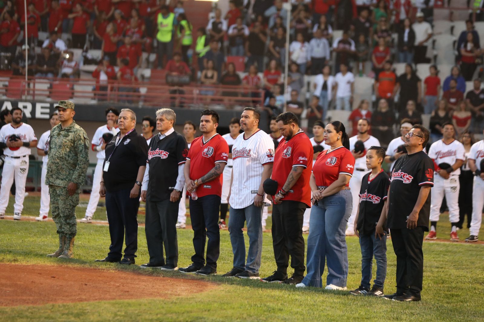 El Presidente Municipal, Cruz Pérez Cuéllar, inauguró la Temporada 2025 de la Liga Estatal de Beisbol y se encargó de hacer el primer lanzamiento.