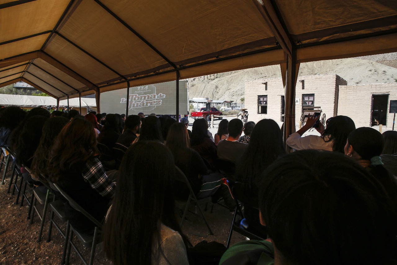 La representación fue apreciada por estudiantes del CECyT 9 de Lomas de Poleo, así como la directora general del DIF Municipal, Lucia Chavira Acosta; las regidoras Martha Mendoza Rodríguez, Gloria Mirazo de la Rosa, Dina Salgado Sotelo; el director del CECyT 9, Sergio Reyes, Eduardo García Rodríguez, del Buró de Convenciones de Ciudad Juárez; Ever Ruiz Parra, del Centro de Información Turística de El Chamizal y Edgar Cázares Díaz, del Fideicomiso.