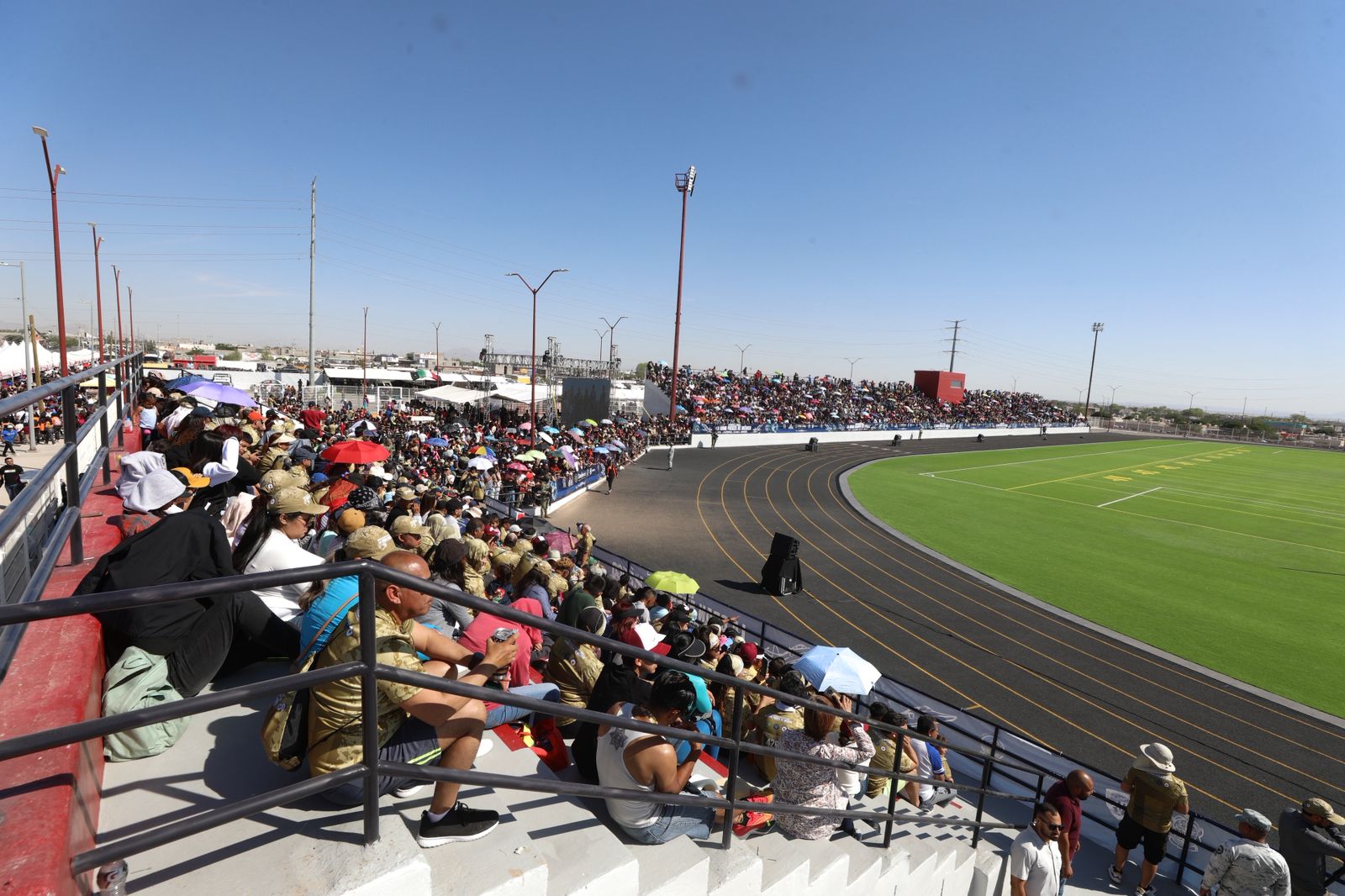 Este domingo 11 de mayo, miles de familias juarenses se dieron cita en el Estadio Municipal 8 de Diciembre y sus alrededores para presenciar “La Gran Fuerza de México”, evento organizado por la Secretaría de la Defensa Nacional (SEDENA), la Guardia Nacional y otras instancias militares, que incluyó una carrera pedestre y un impresionante espectáculo aéreo.