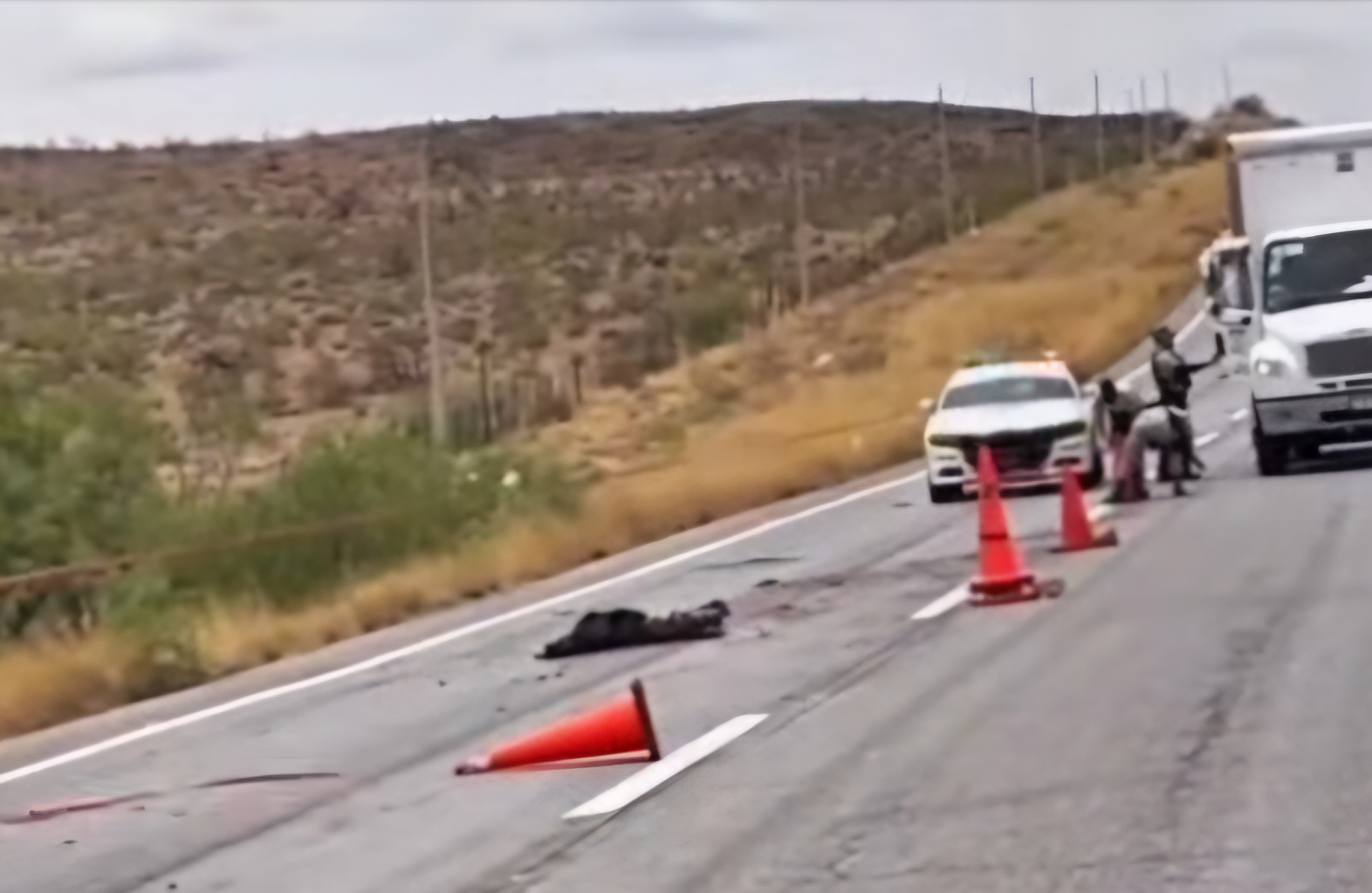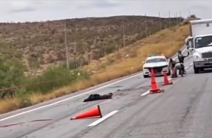 Conductores que transitaban por la carretera en sentido de Chihuahua a Ciudad Juárez reportaron al número de emergencias que, a la altura del kilómetro 116+800, se encontraba un cuerpo aparentemente atropellado.