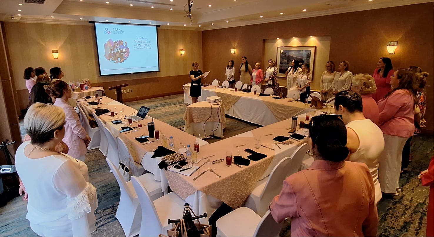 Elvira Urrutia Castro, directora general del Instituto Municipal de las Mujeres (IMM), brindó una charla informativa sobre tipos y modalidades de la violencia, dirigida a integrantes de la Asociación Mexicana de Mujeres Empresarias (AMEXME).