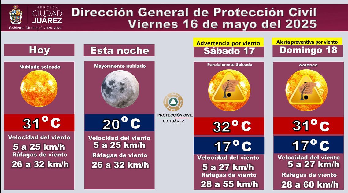 La Dirección General de Protección Civil informó el pronóstico del clima correspondiente a este viernes 16 de mayo y los días siguientes.