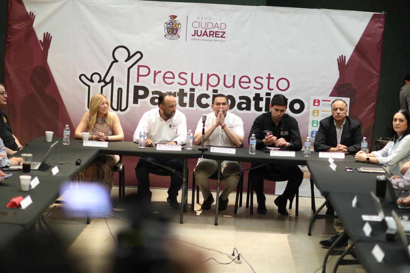 En el arranque estuvieron vía zoom, Jesús Ortega Pineda de la Dirección Ejecutiva de Educación Cívica y Participación Ciudadana, mientras que de forma presencial estuvieron el secretario del Ayuntamiento, Héctor Rafael Ortiz Orpinel; la síndica Ana Carmen Estrada y los funcionarios municipales que fugen como coordinadores de polígonos.