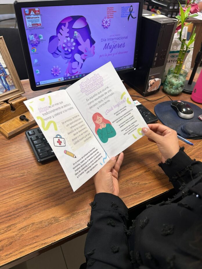 Integrantes del equipo de Difusión y Capacitación de la Dirección de Derechos Humanos entregaron este día el boletín informativo, titulado “La Maternidad Deseada”, en las oficinas de la Unidad Administrativa “Lic. Benito Juárez” (presidencia municipal),