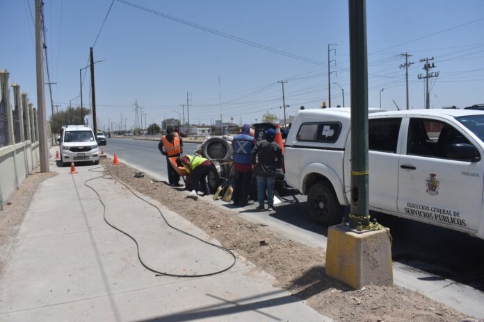 En atención a una solicitud enviada por la Guardia Nacional al director general de Servicios Públicos, Arturo Rivera Barreno, la Dirección de Limpia, encabezada por su titular Gibran Solís, inició ayer un operativo especial de limpieza en el tramo del eje vial Juan Gabriel, a la altura del crucero de la avenida Barranco Azul, donde se encuentran las instalaciones de la SEDENA y la Guardia Nacional.