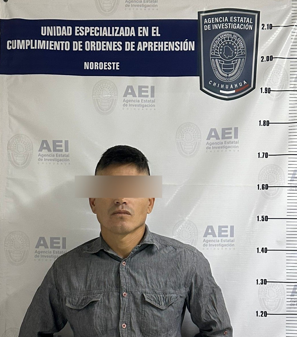 El imputado de 38 años fue detenido por elementos de la Agencia Estatal de Investigación el 23 de mayo de 2025, con una orden de aprehensión que le cumplimentaron en la colonia Villahermosa en Casas Grandes.