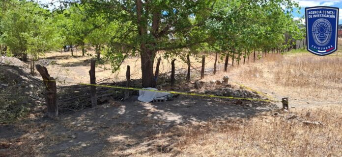 Se dio a conocer por parte de los oficiales de la A.E.I que al arribar al lugar se tuvo a la vista el cuerpo de una femenina ya sin signos el cual estaba en el piso en posición decúbito dorsal al cual a simple vista no se le observan lesiones y se aprecia un trapo tipo camiseta amarrada al cuello misma prenda atada a un poste de madera.