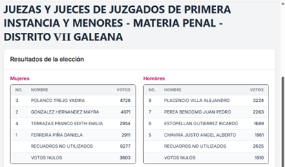 Luego de terminado el cómputo de las 155 casillas instaladas en los municipios que conforman el Distrito Judicial Galeana, se dio a conocer que la Lic. Yadira Polanco Trejo, la Lic. Mayra González Hernández y el Lic. Alejandro Placencio Villa resultaron ganadores en el proceso y será a partir del 1 de septiembre cuando entren en funciones.