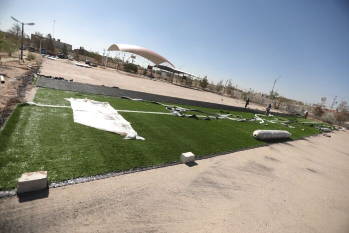 Daniel González García, director general de Obras Públicas, informó que la obra presenta un 35 por ciento de avance; actualmente se trabaja en las terracerías de la cancha para posteriormente hacer la colocación de pasto sintético en la misma, tarea que se realiza con una inversión de 4 millones 300 mil pesos.