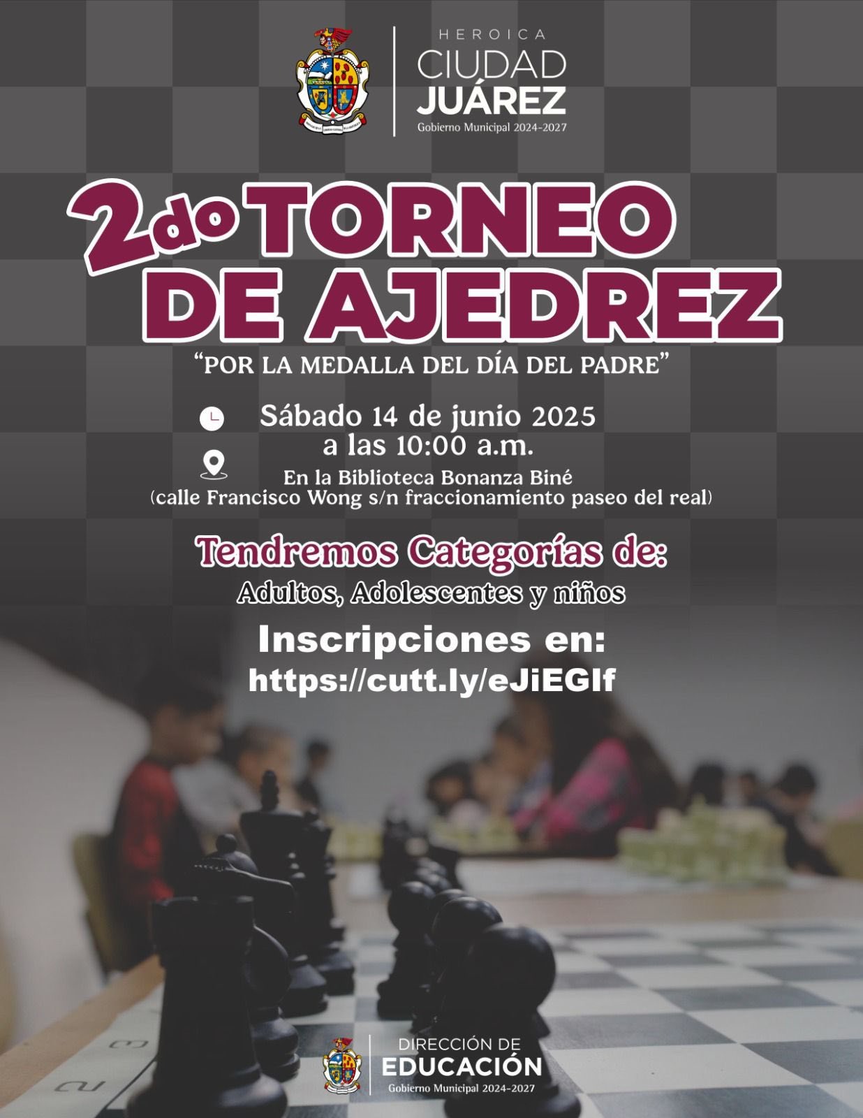 La Dirección de Educación convoca al Segundo Torneo Municipal de Ajedrez “Por la medalla del Día del Padre”.