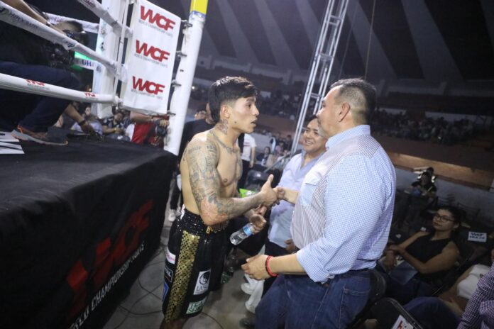 El alcalde reconoció al pugilista juarense Uziel “El Muñeco” Belman, quien se impuso por knockout en el primer asalto a su adversario, el oriundo de la ciudad de Veracruz, Francisco “Tayson” Ramírez.
