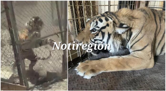 El tigre es “un macho joven de aproximadamente 2 años, fue hallado en un espacio improvisado, con piso de tierra, sin agua disponible y alimentado con restos de pollo“.