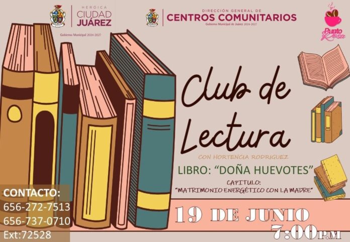 El Club de Lectura con Hortensia López se va a llevar a cabo mañana jueves 19 de junio a las 7:00 de la tarde vía la plataforma digital Zoom.