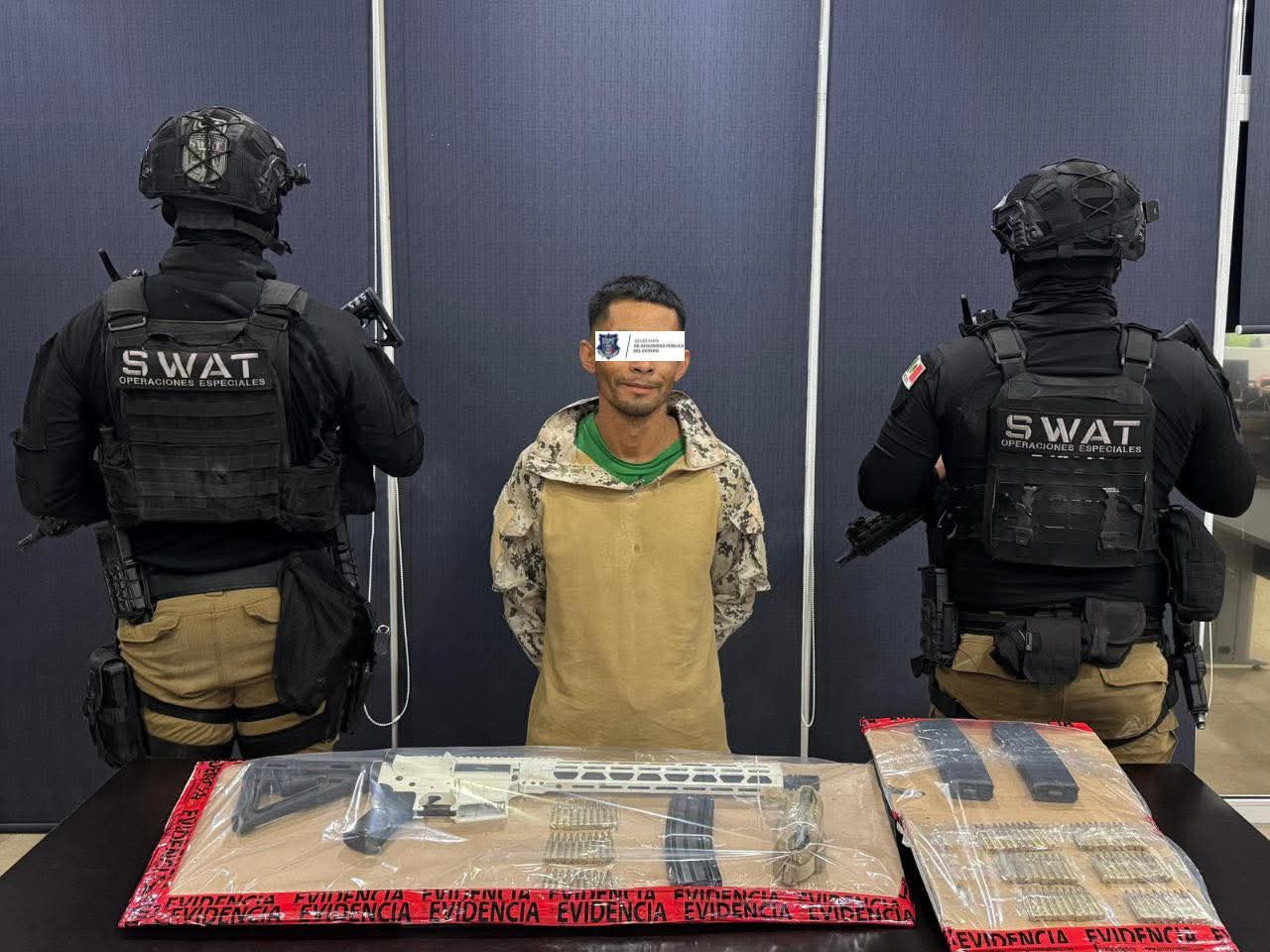 Durante el operativo, fue detenido un masculino de nombre Mauro R.Ch. de 32 años, en posesión de un arma de fuego de uso exclusivo del ejército, en violación a la Ley Federal de Armas de Fuego y Explosivos.