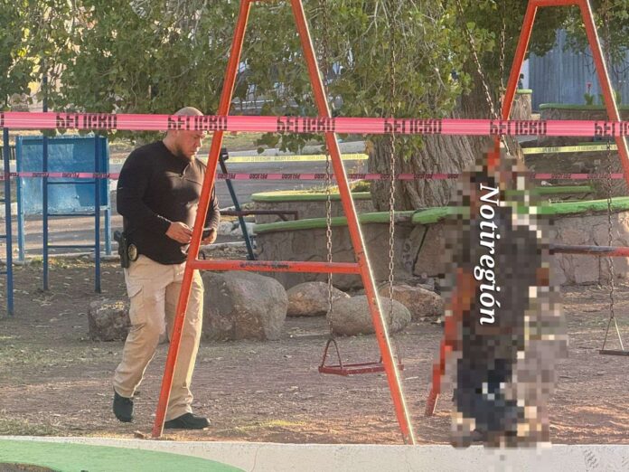 El hombre se encontraba suspendido de uno de los columpios del parque, con la cadena enredada en el cuello.