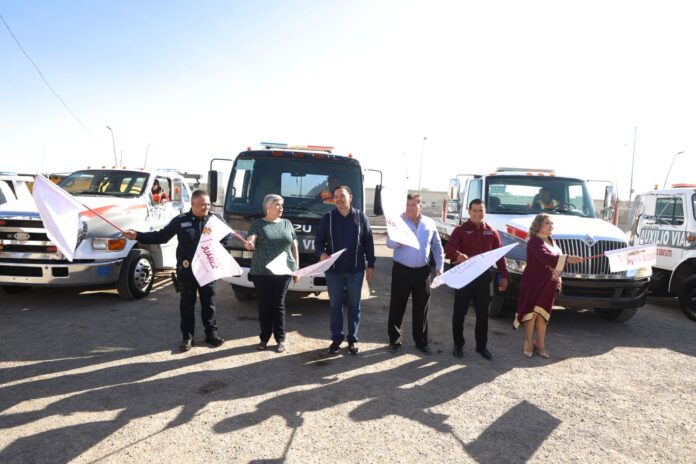 Por su parte, Jesús Manuel García Reyes, coordinador general de Seguridad Vial, mencionó que la adquisición de estas 5 grúas, cuatro de plataforma y una de arrastre, se vuelve un complemento del servicio que ya se viene dando con anterioridad y que también se podrán solicitar por medio del teléfono de Auxilio Vial, 656-825-3560.