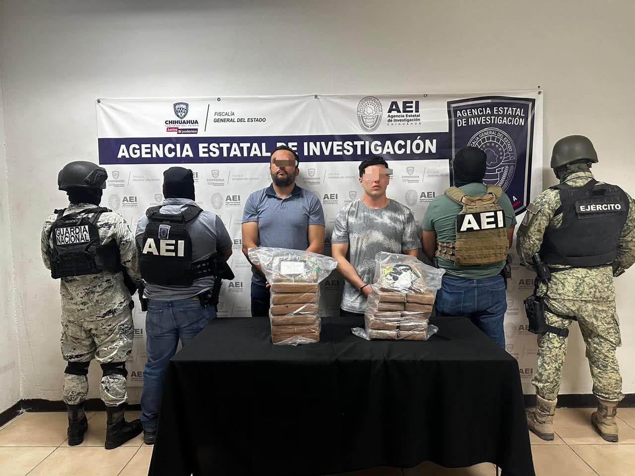 Los detenidos son Christian Ch. A., de 33 años de edad, y José Domingo C. G., de 37 años de edad, ambos con domicilio en Ciudad Juárez, por delitos contra la salud.