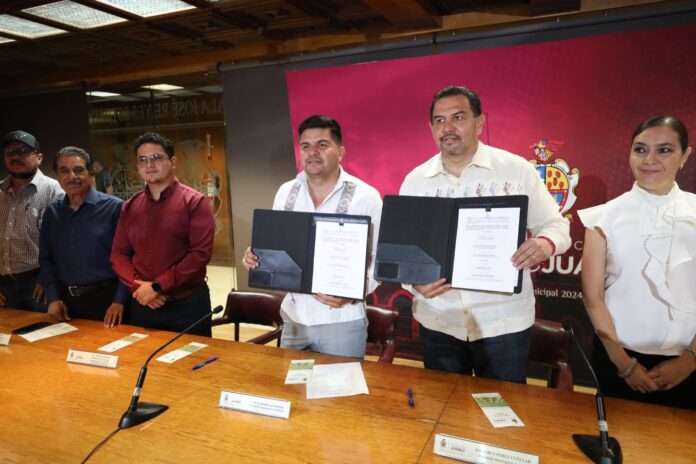 El Gobierno Municipal de Juárez firmó hoy un convenio de colaboración en materia de transferencia de tecnología agrícola, con los municipios de Ahumada y Guadalupe.