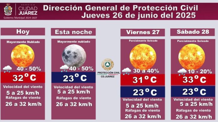 La Dirección General de Protección Civil del Municipio dio a conocer el pronóstico del clima para los próximos días, destacando condiciones mayormente nubladas y probabilidad de lluvias en la región.