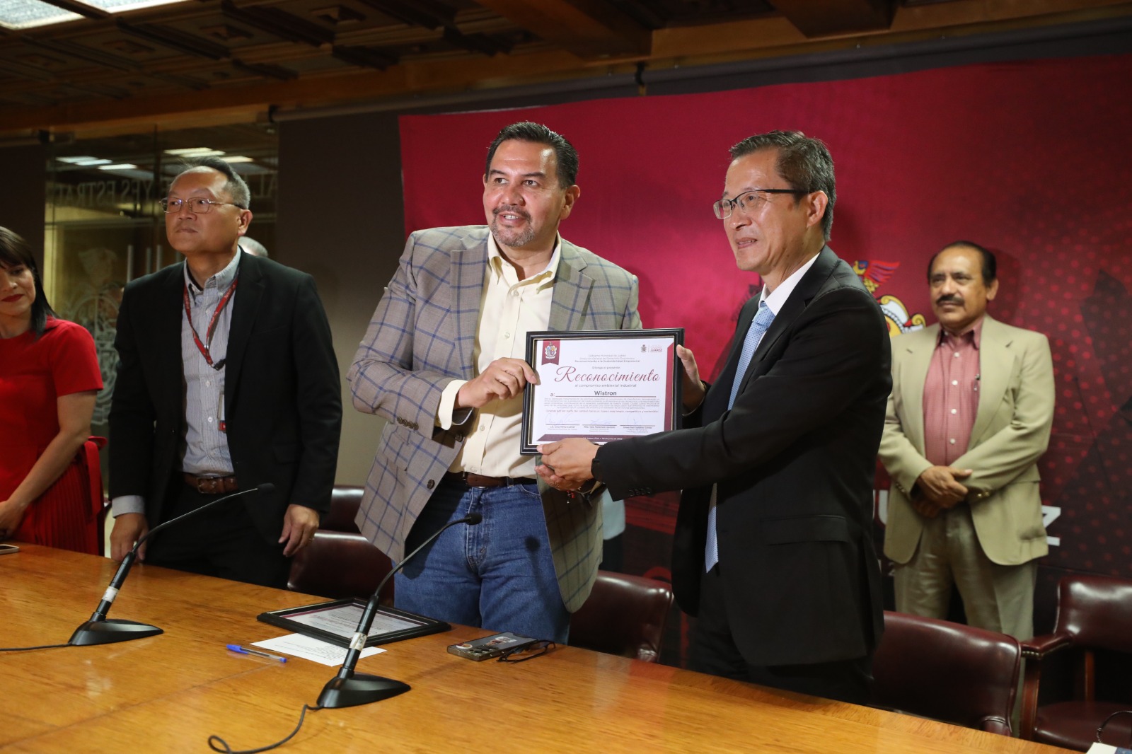 Este día, el Gobierno Municipal, a través de la Dirección General de Desarrollo Económico, entregó un reconocimiento por sus buenas prácticas en sostenibilidad y responsabilidad ambiental a las empresas Wistron e Inventec, como parte del compromiso institucional por promover la cultura ecológica en el sector empresarial.