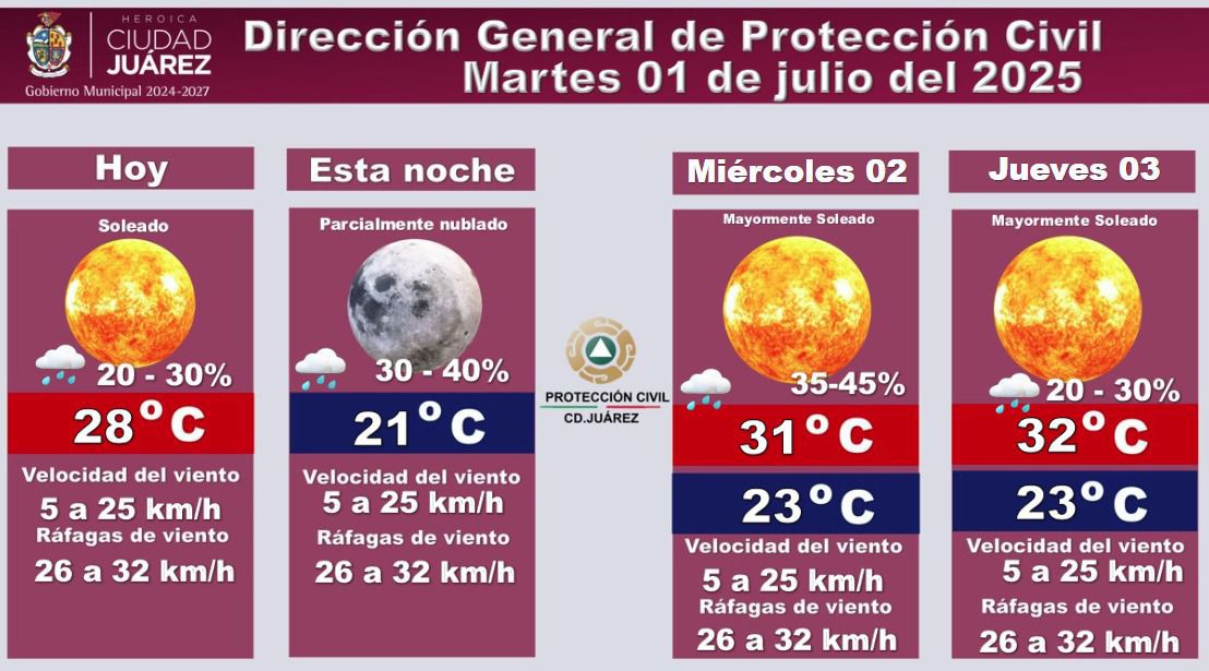 La Dirección General de Protección Civil informó el pronóstico del clima correspondiente para hoy martes 1 de julio y los días siguientes.