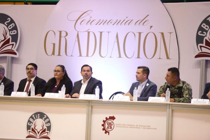 “Para mí es un privilegio y un gran honor estar aquí hoy, en un evento tan importante para estos 435 jóvenes del CBTIS “, expresó el alcalde, quien los exhortó a perseguir sus sueños.