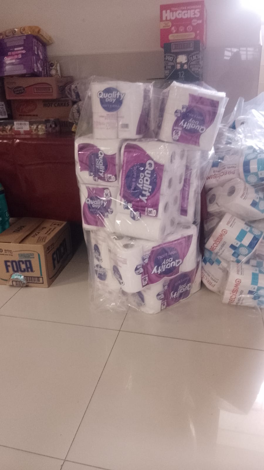 Añadió que llevaron papel de baño, despensas, agua embotellada, artículos de limpieza (trapeadores, escobas, recogedores, jabón, cloro, detergente, entre otros), así como cobijas.