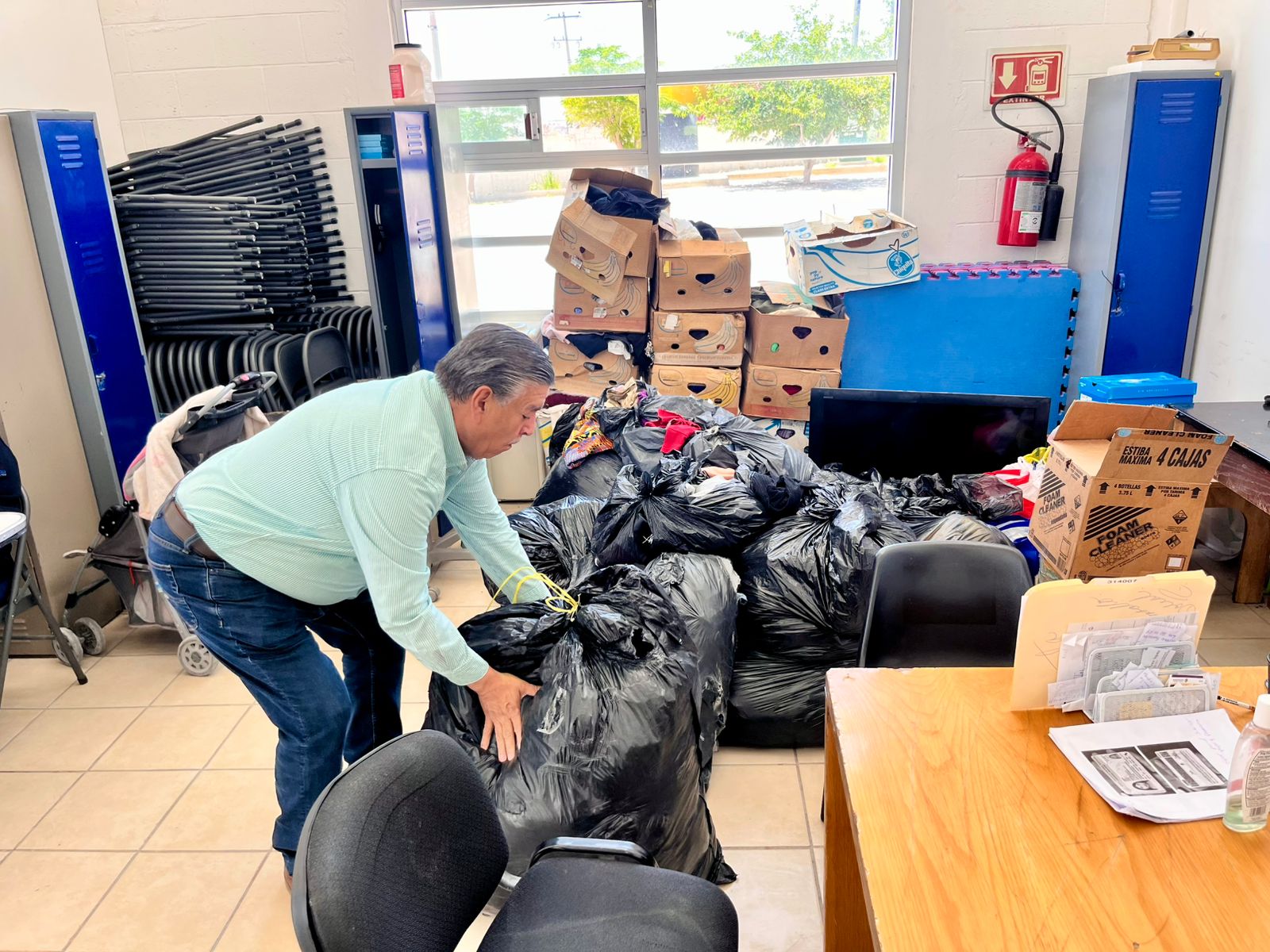 Dijo que donaron ropa, zapatos, agua embotellada, pañales, alimentos no perecederos así como artículos de higiene personal.