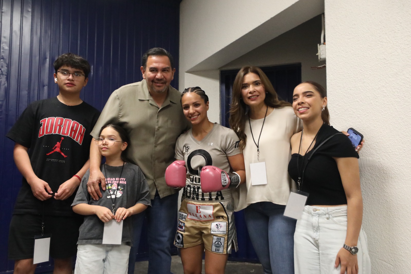 El alcalde acudió a la función que se realizó en el Gimnasio Universitario de la Universidad Autónoma de Ciudad Juárez, donde los encuentros principales fueron las del juarense Miguel “Fantástico” Esparza y Diana “La Bonita” Fernández.