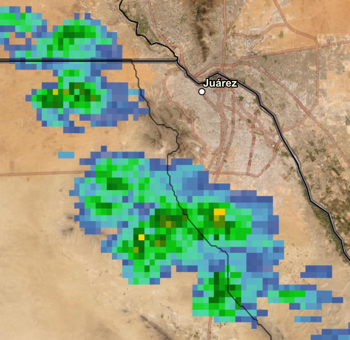 De acuerdo con el reporte actualizado a las 3:05 de la tarde, se detecta humedad en la zona oeste del territorio municipal. En caso de registrarse precipitación, se espera que esta varíe entre lluvia muy ligera y lluvia moderada. Sin embargo, en caso de desarrollarse tormentas, podrían presentarse descargas eléctricas, rachas de viento e incluso caída de granizo.