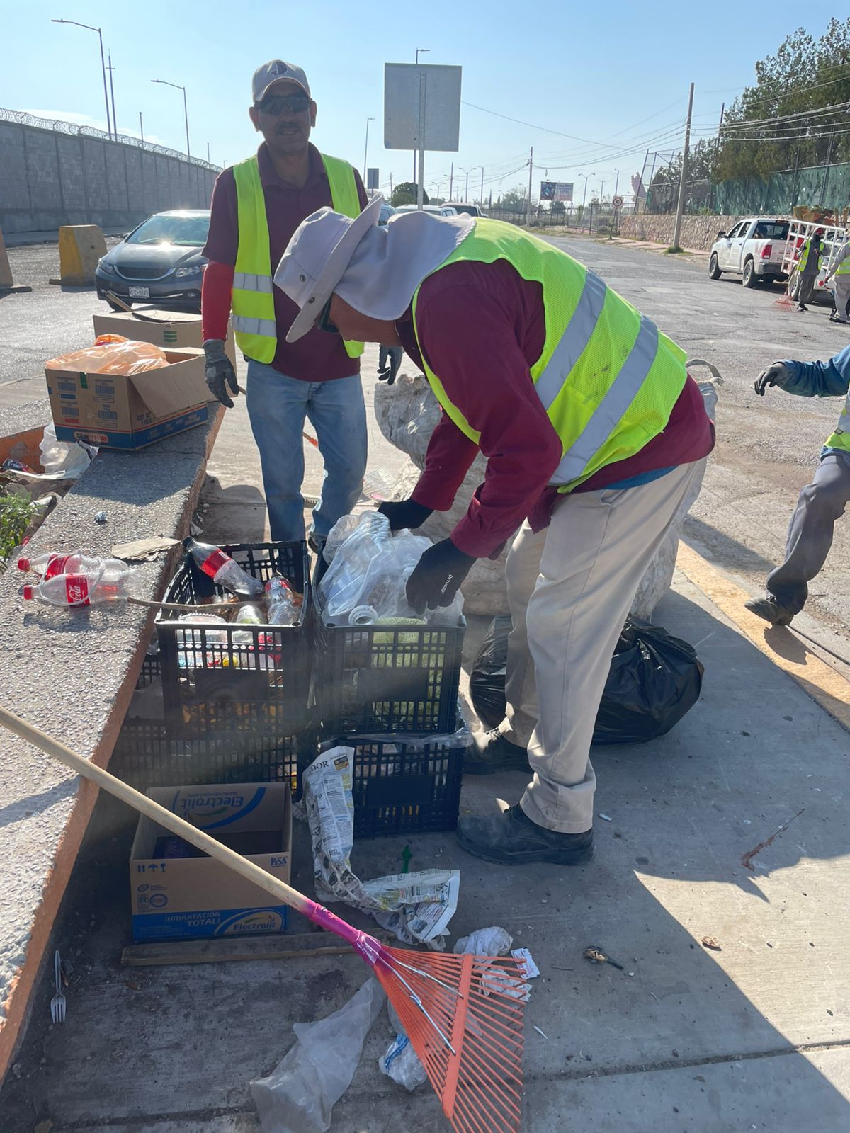 El titular de la dependencia, Gibran Solís, informó que entre las actividades se realizó el vaciado de cestos de basura desde la avenida Plutarco Elías Calles hasta la avenida de Las Américas, así como la limpieza general en el Puente Internacional Córdova-Américas.