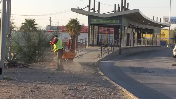 Cuadrillas de la Dirección de Limpia realizaron hoy labores de destilichadero en el bulevar Zaragoza, como parte de las acciones permanentes para mantener en buen estado los diversos sectores de la ciudad.