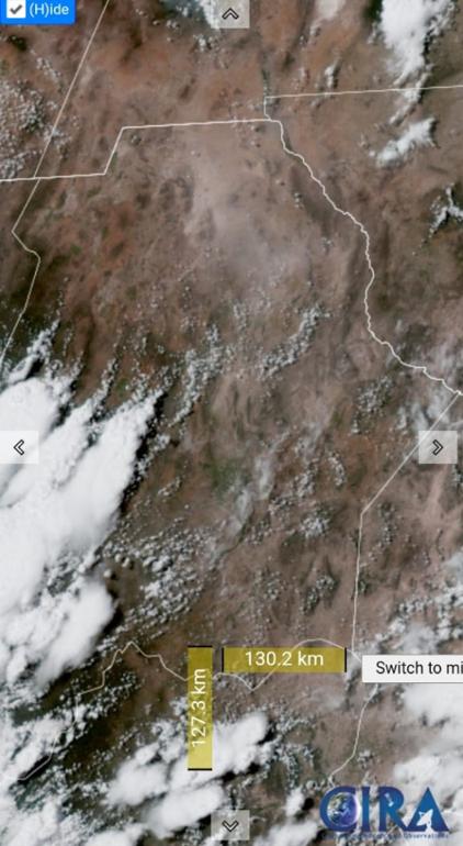 Indica que esta tarde de viernes 11 de julio detectó un “desplazamiento de una nube de polvo generada por los vientos intensos en el municipio de Ahumada”.