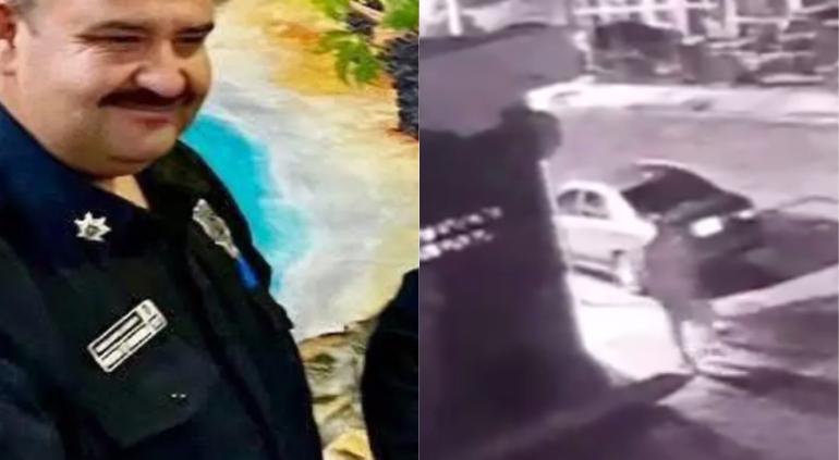 Cámaras de seguridad captaron el momento en que dos hombres armados con fusiles de asalto le dispararon a corta distancia, a tan solo siete metros, cuando el mando policial se disponía a cruzar la calle.