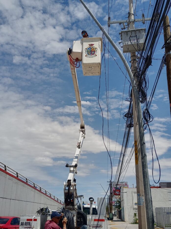 Los empleados de Alumbrado Público laboraron este día en la supervisión y reparación de luminarias en el eje vial Juan Gabriel, avenida Panamericana, bulevar Zaragoza, Carretera a Casas Grandes y Paseo de la Victoria, además atendieron colonias como Terrenos Nacionales, Morelos II, Senderos de San Isidro, Riberas del Bravo, La Cañada, Zaragocita y El Papalote.