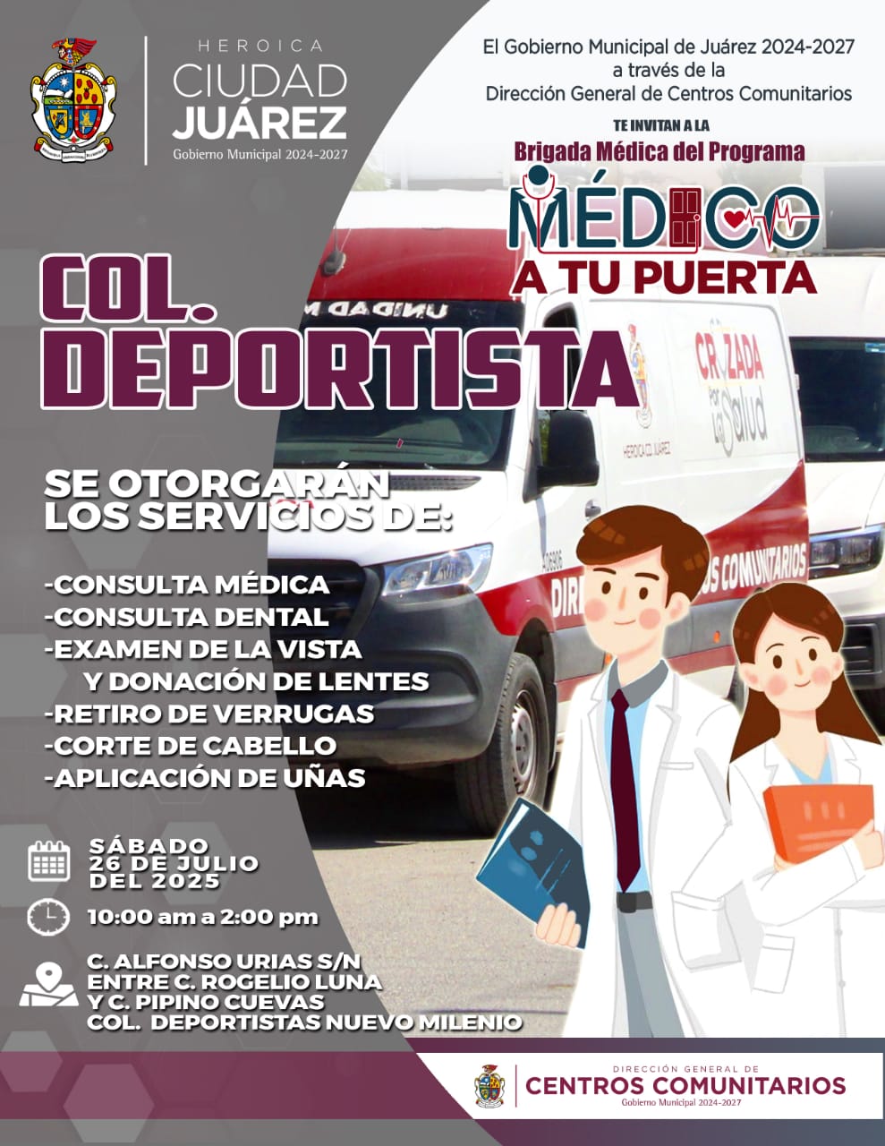 El Gobierno Municipal, a través de la Dirección General de Centros Comunitarios, invitan a la ciudadanía a la brigada del Programa Médico a Tu Puerta.