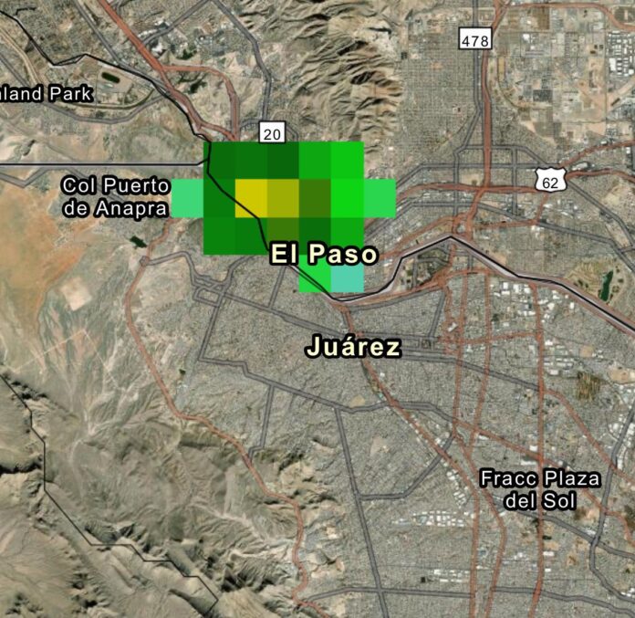La Dirección General de Protección Civil informa que, de acuerdo con el radar meteorológico, se detecta una pequeña tormenta ubicada en territorio estadounidense, muy cerca de la frontera con Ciudad Juárez, al noroeste del territorio municipal.