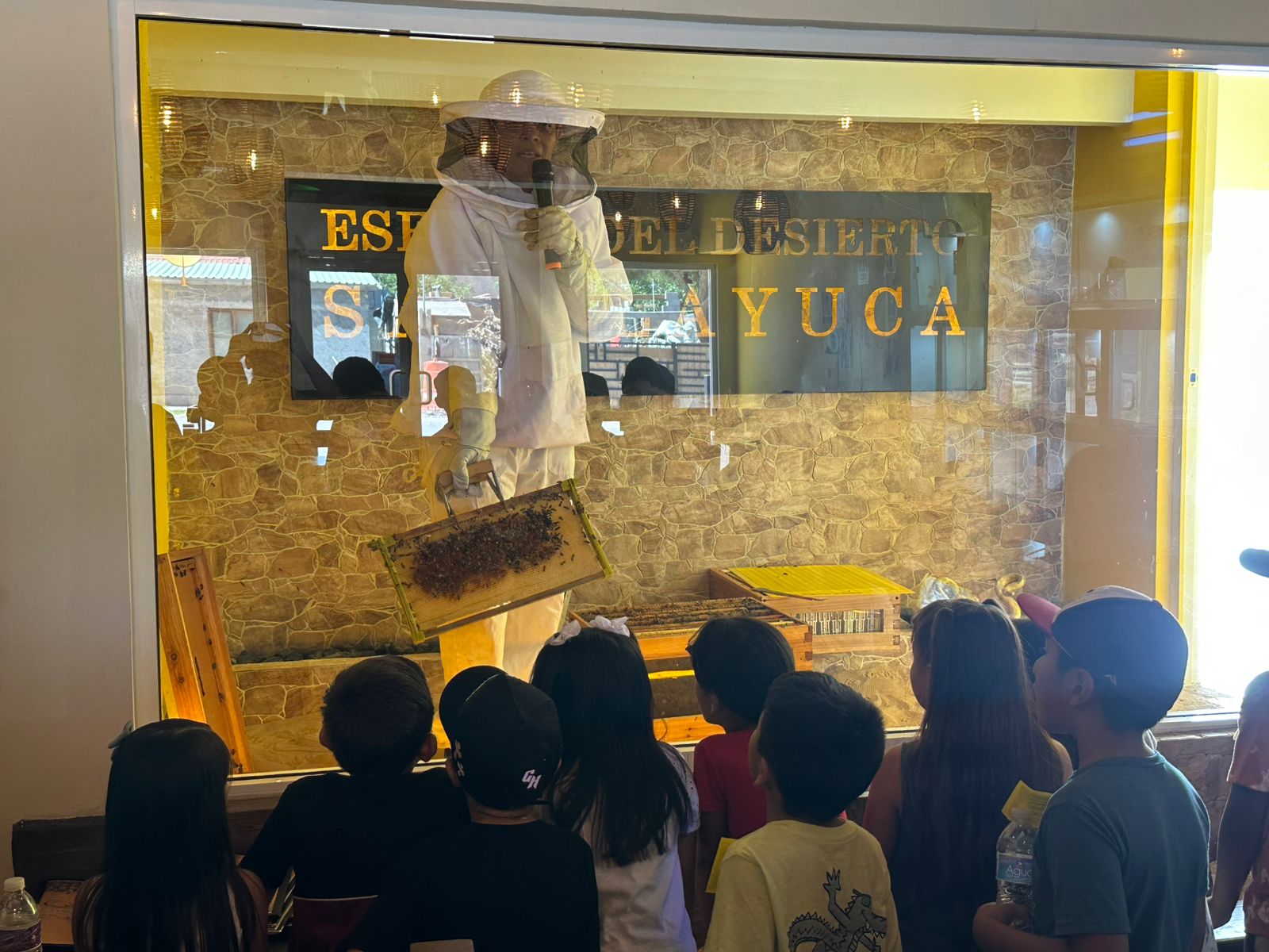 Guillermo Eduardo Alvídrez Olivas, titular de Educación, comentó que como parte de la clausura de actividades, las y los niños asistentes visitaron el restaurante La Esencia del Desierto, donde observaron colmenas de abejas para conocer el proceso de la producción de miel.