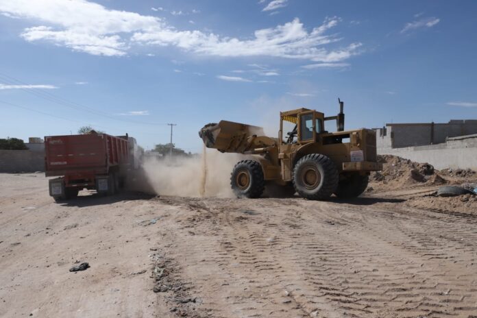 En atención a una solicitud ciudadana, la Dirección General de Servicios Públicos, a través de la Dirección de Limpia, inició las labores de limpieza en la avenida Santiago Troncoso, en el tramo de la calle Puerto Alicante a la Lote Bravo, el cual aún no cuenta con carpeta asfáltica y hay un importante acumulamiento de tiliches y escombro.