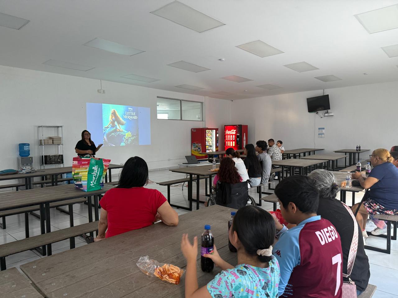 Con el fin de llevar una amena convivencia entre los migrantes que se encuentran en el albergue Municipal Felipe Ángeles, se llevó a cabo una función especial de cine con la proyección de la película La Sirenita.