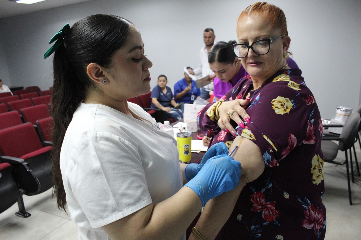 Personal de Pensiones Civiles del Estado aplicaron la vacuna. Al respecto, la Fiscal de Distrito, Silvia González Gutiérrez, indicó que previamente se concientizó a los trabajadores sobre el beneficio de protegerse contra esa enfermedad.