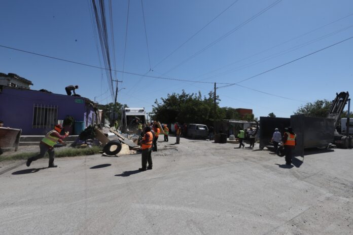 En un segundo operativo del programa permanente de Reordenamiento Urbano efectuado este día, personal del Municipio retiró muebles, llantas y basura que se encontraban en la banqueta de una vivienda entre las calles Simón Bolívar y Polonia, en la colonia Industrial.