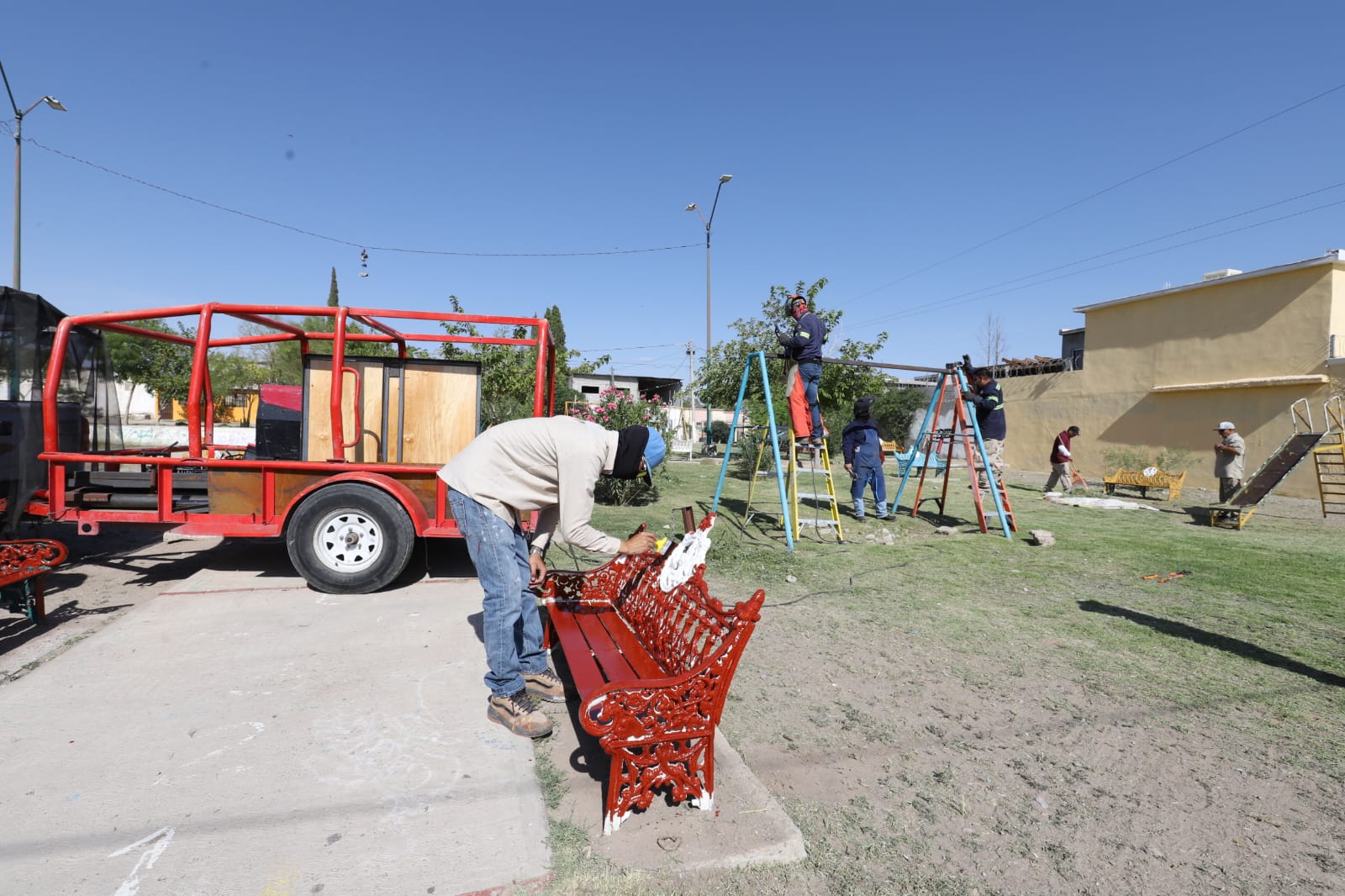 Las labores en este espacio ubicado entre las calles Angelina Gallegos y Diego Lucero, consistieron en la limpieza general, retiro de residuos de limpia, poda formativa de arbolado y retiro de residuos de poda, así como la reparación y pintura de los distintos juegos infantiles, informó Daniel Zamarrón Saldaña, titular de la dependencia.