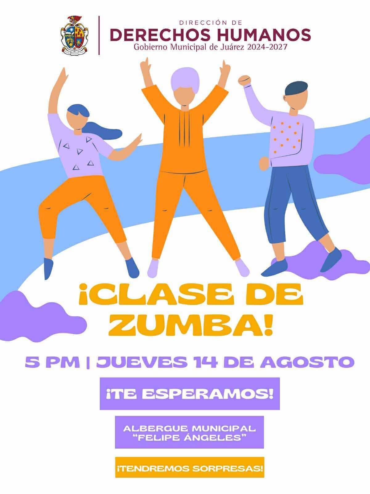 La Dirección de Derechos Humanos invita mañana jueves a disfrutar de una clase de zumba impartida de manera gratuita para las y los vecinos de la colonia Felipe Ángeles y sus alrededores.