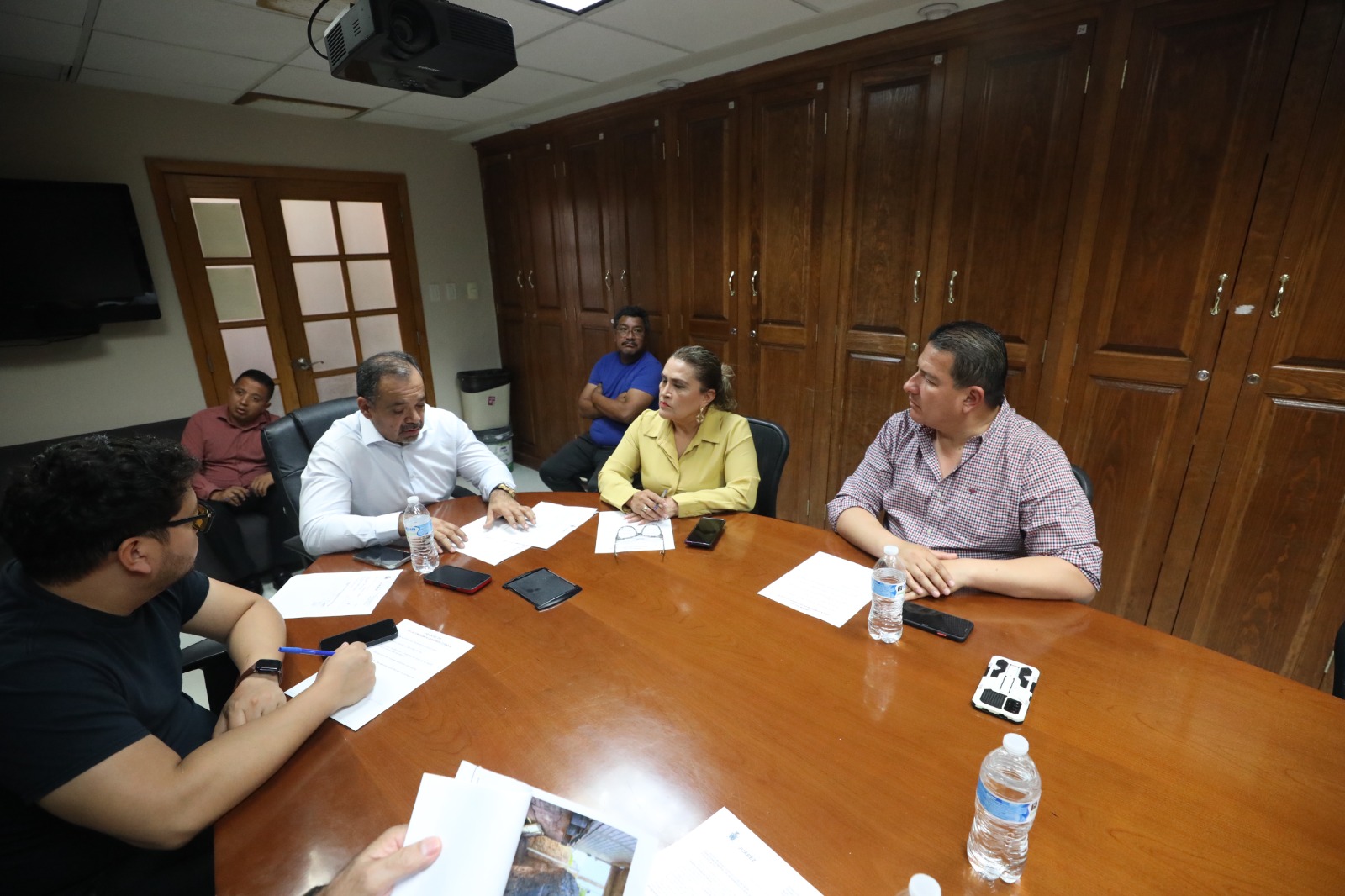 Regidores de la Comisión Edilicia de Desarrollo Social se reunieron con el director general de esa dependencia, Hugo Vallejo Quintana, con quien hablaron sobre la entrega de despensas y la entrega de agua para las familias en las colonias que no están conectadas a la red de distribución.